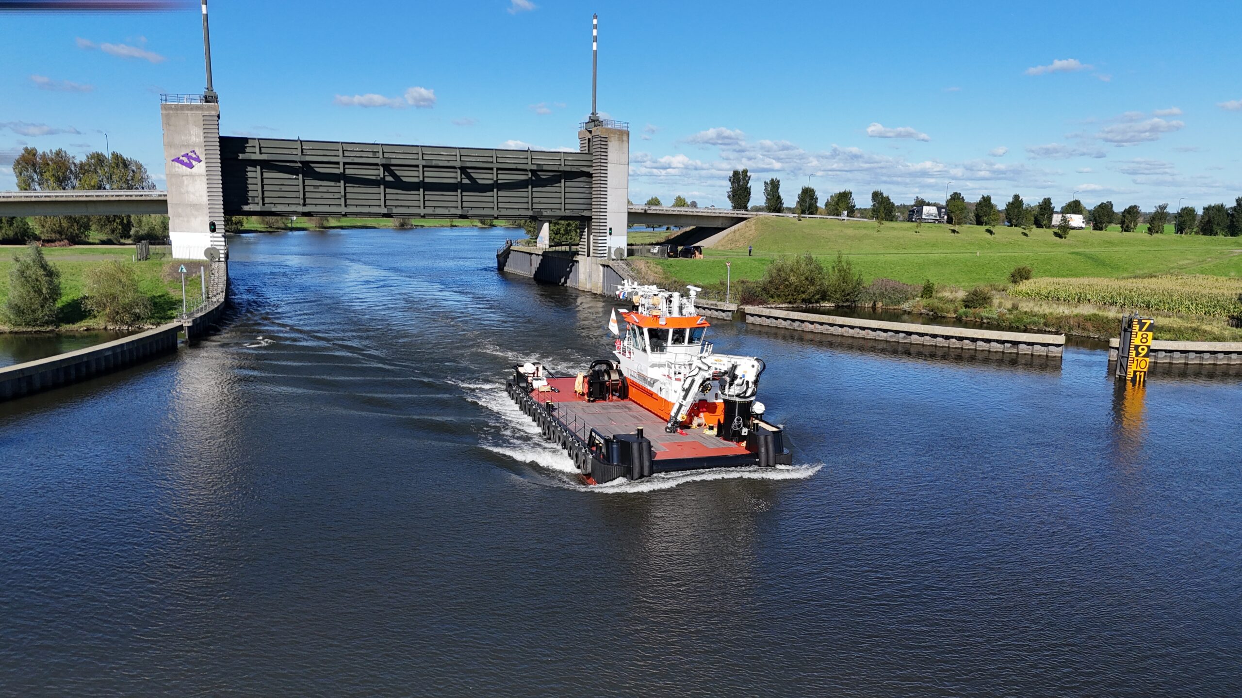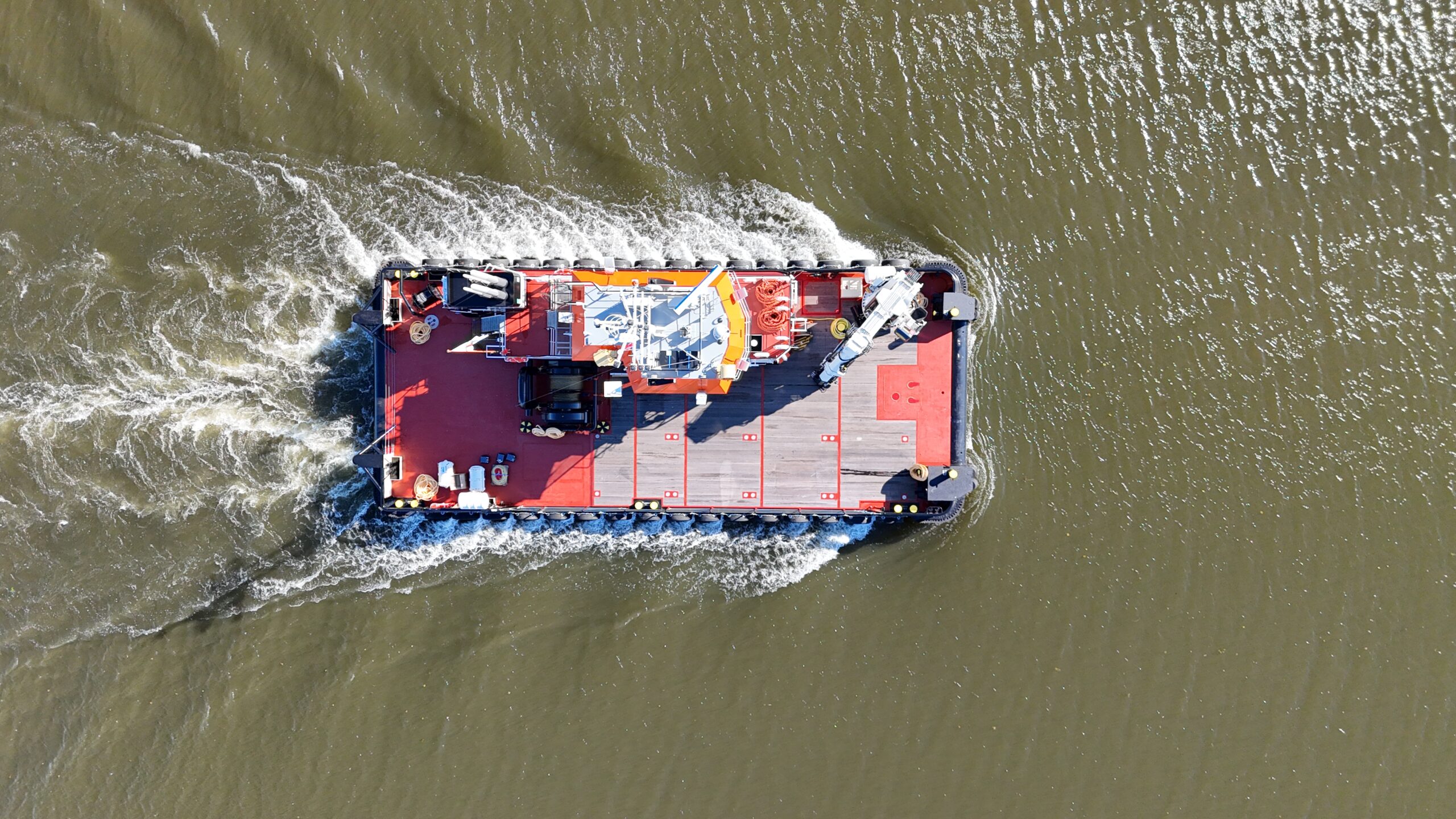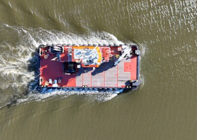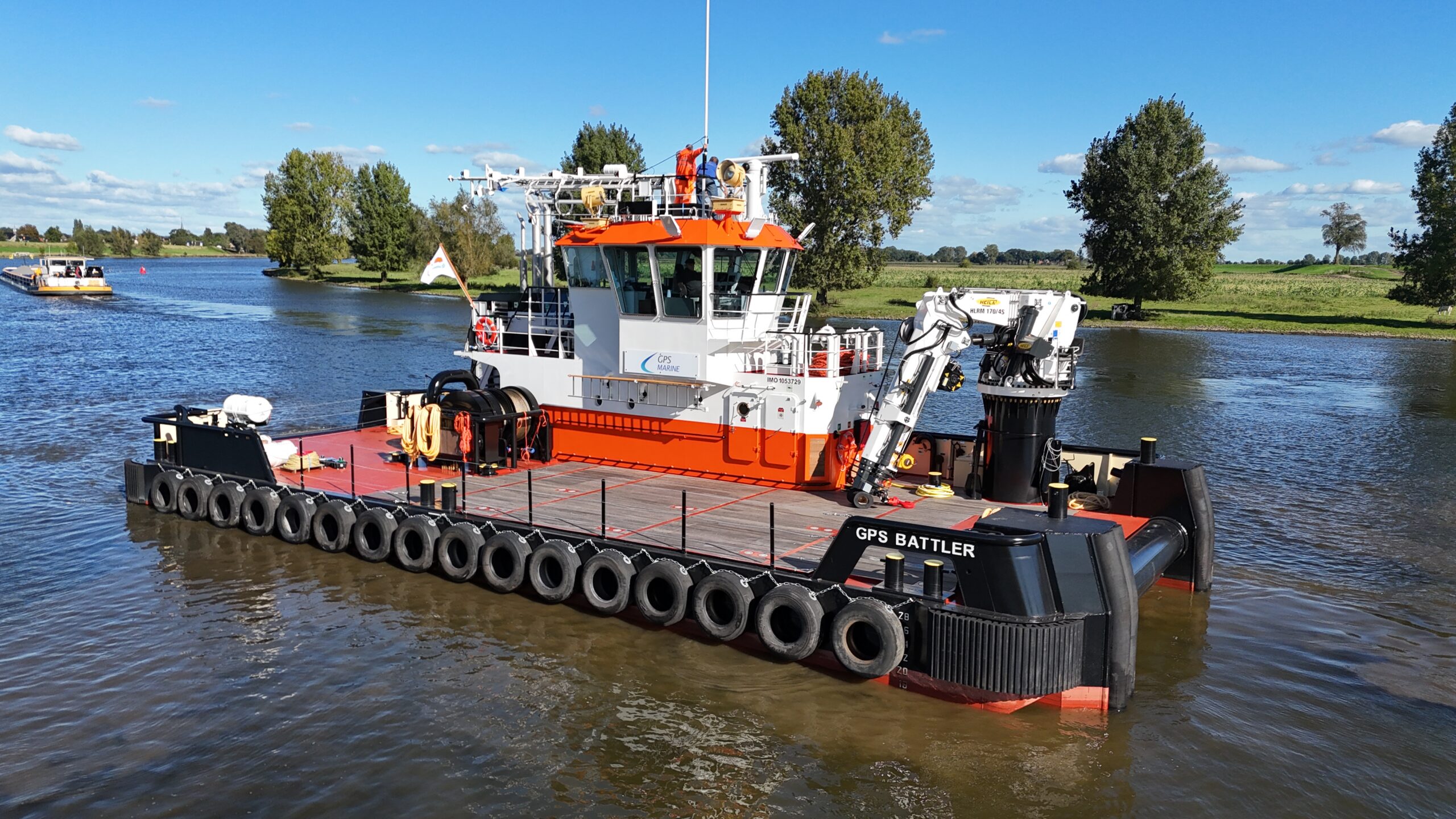 The “GPS BATTLER”, built in 2024, is a shallow draft multipurpose workboat of 24,45 by 9,54 meters.